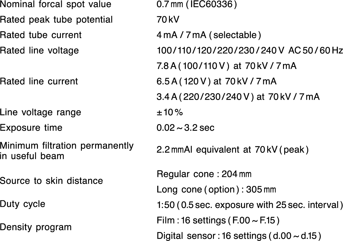 *Selectable tube current :4 mA , 7mA