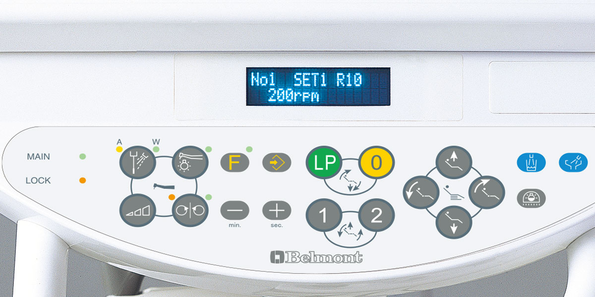 Membrace switches for chair controls and other necessary functions are clearly situated on the control panel of the operator's table.