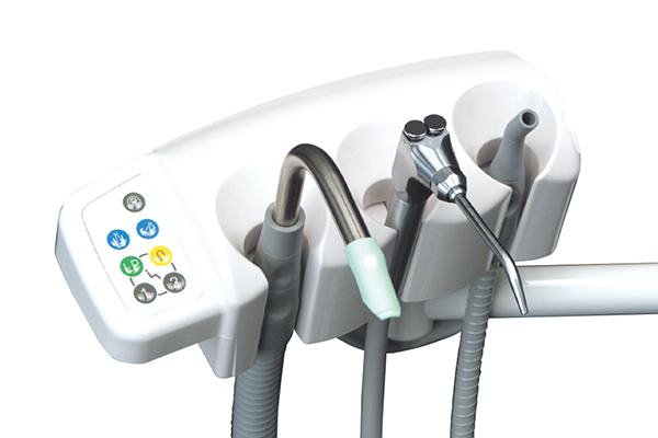 The assistant's console includes 3-way syringe, vacuum and saliva ejector tubings, and easy clean membrane switches to control chair movements,cuspidor bowl flush and cupfiller.