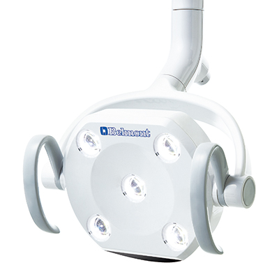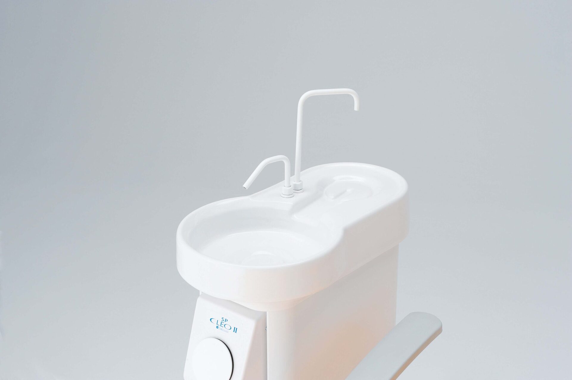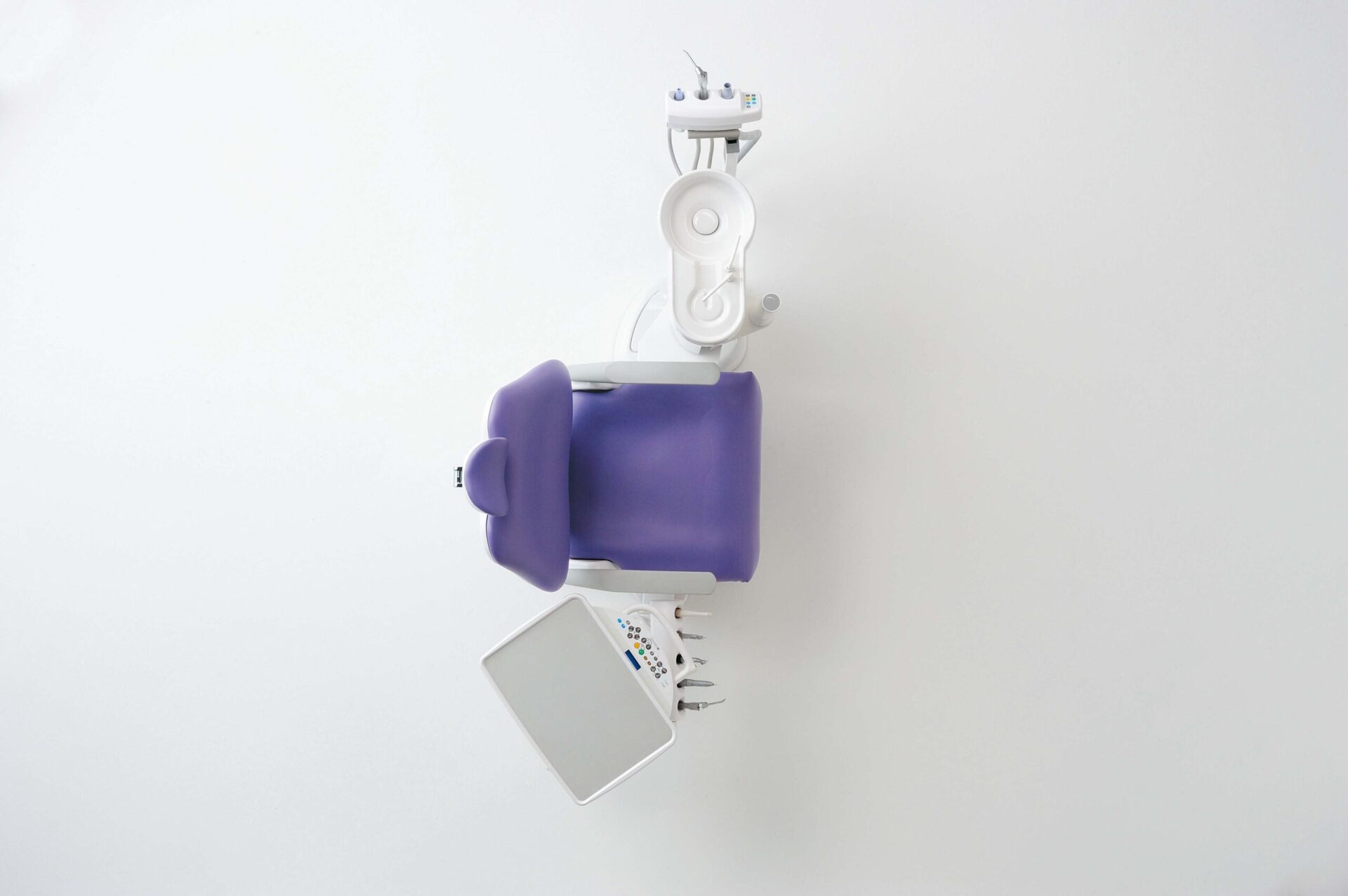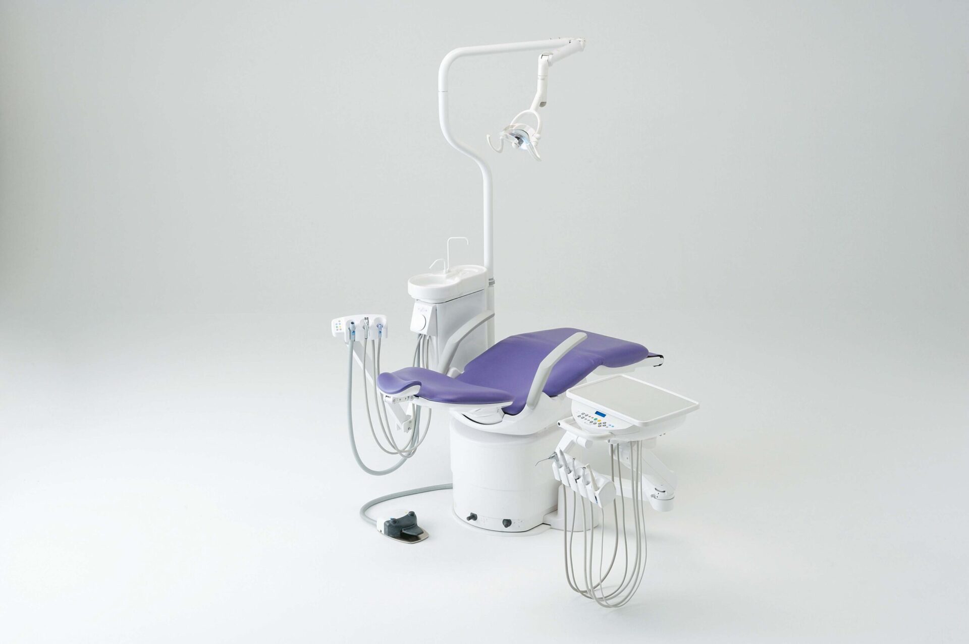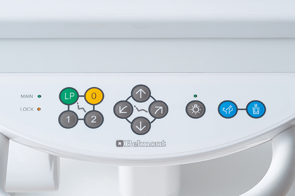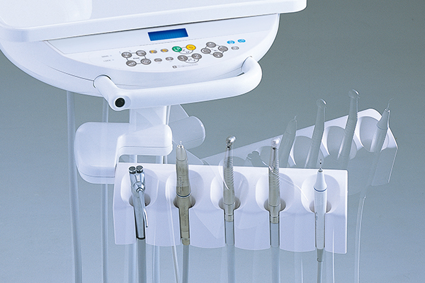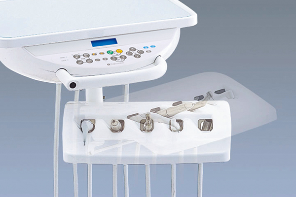 Switches for chair control, cupfiller, and bowl flush are conveniently located next to the handpieces, instead of out of the way on the cuspidor.