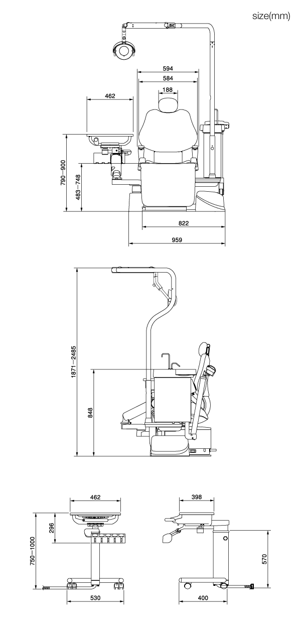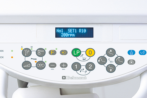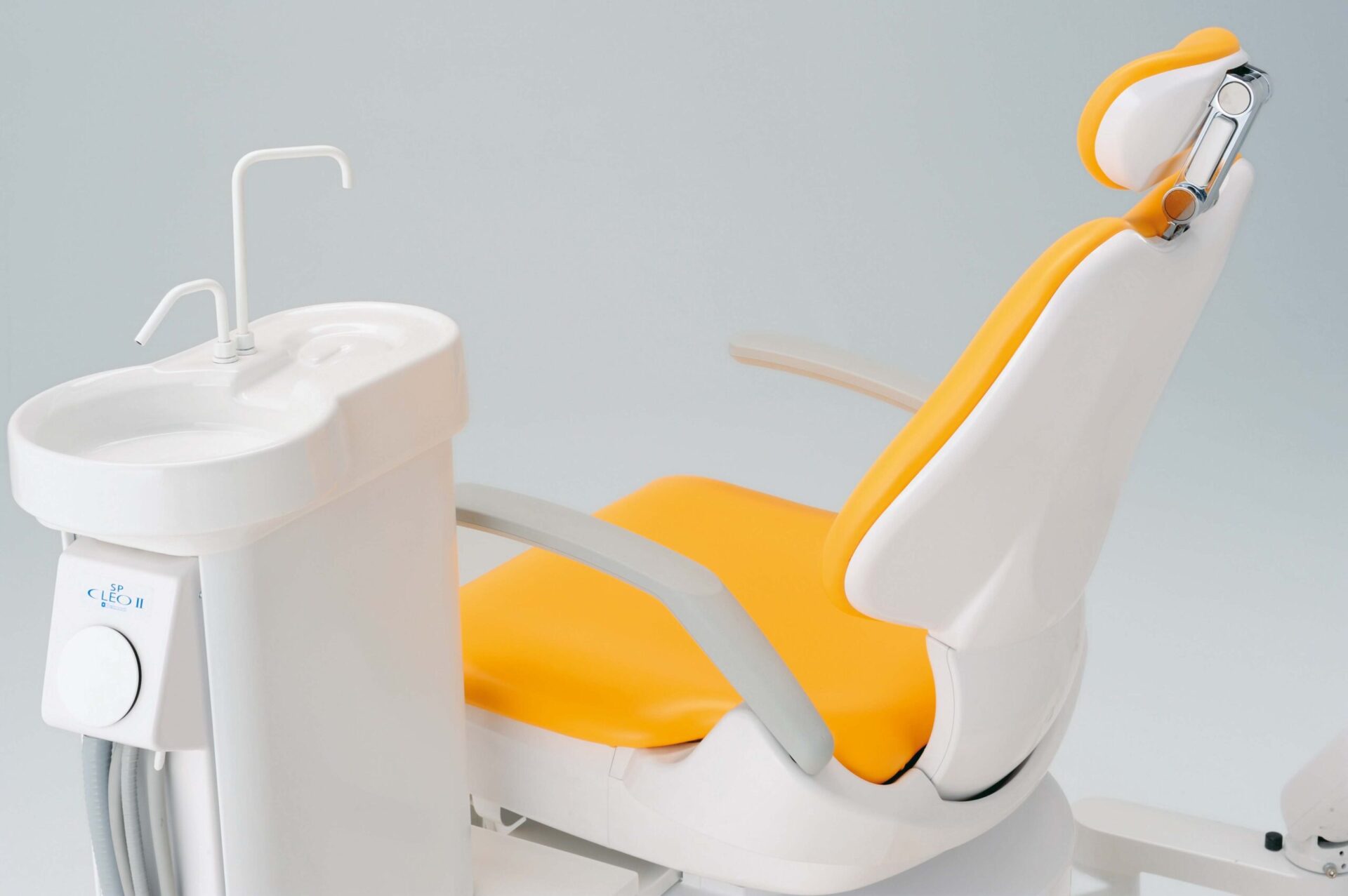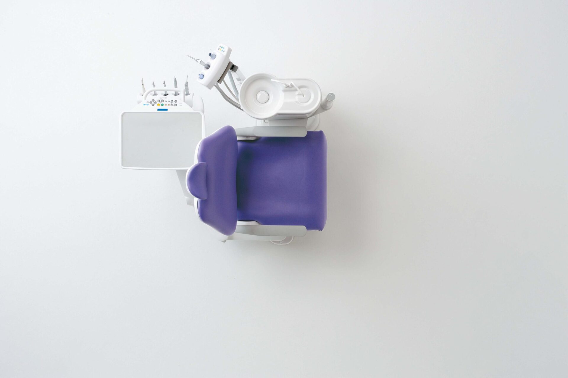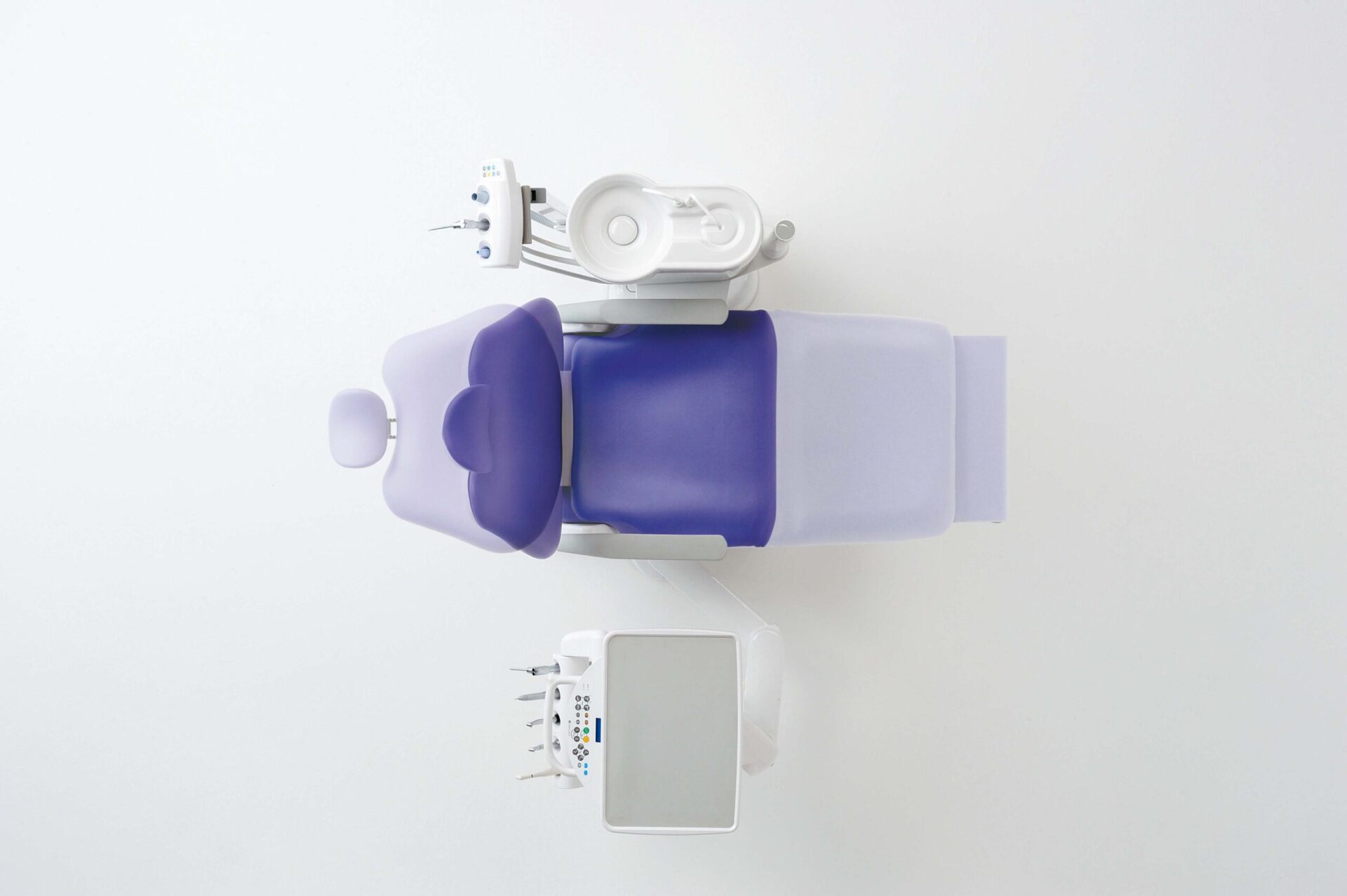 Switches for chair control, cupfiller, and bowl flush are conveniently located next to the handpieces, instead of out of the way on the cuspidor.